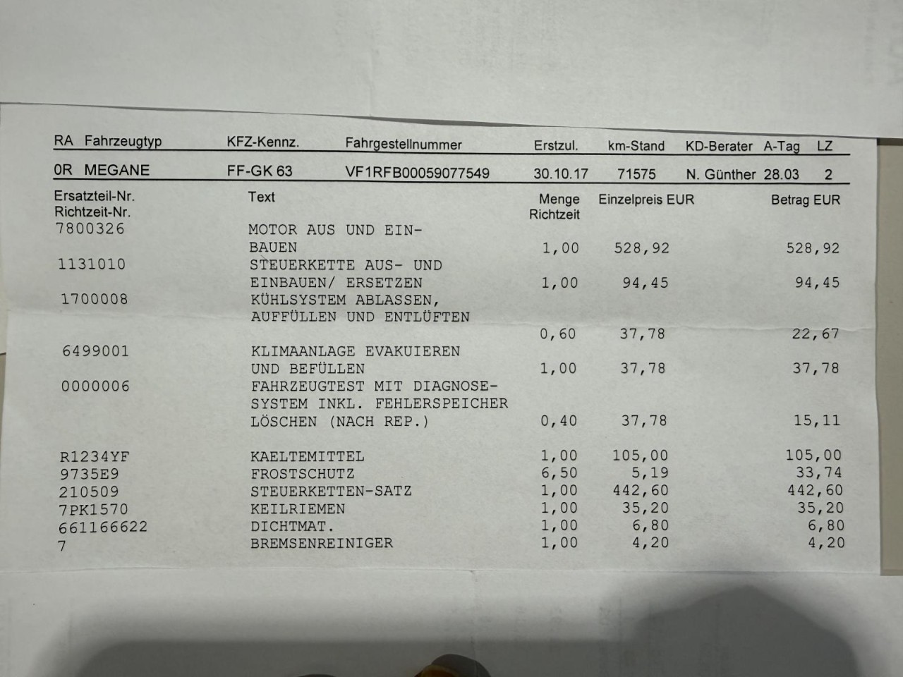 STEUERKETTE ERNEUERT BEI 71.575 KM AM 31.03.2023 (RECHNUNG IN DEN FOTOS EINSEHBAR)